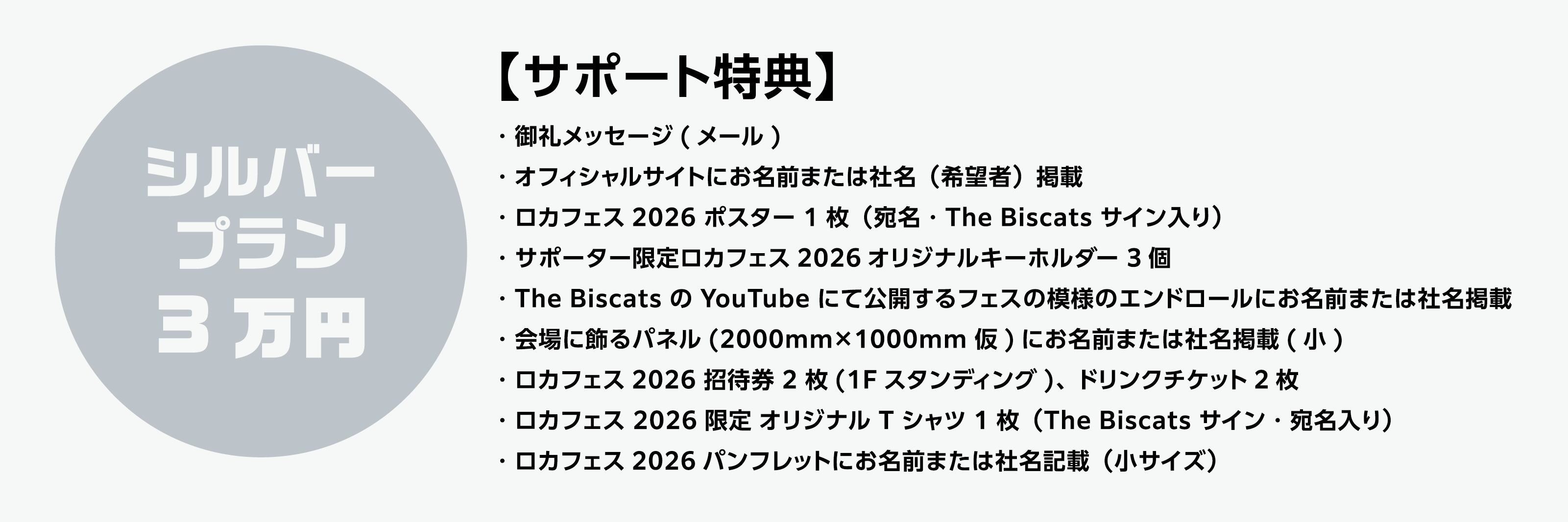 ・The Biscats の YouTube にて公開するフェスの模様のエンドロールにお名前または社名掲載